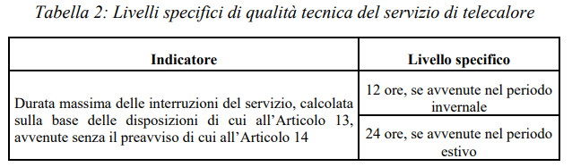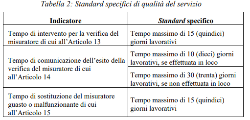 all’art. 18 i seguenti standard specifici di qualità del servizio di telecalore inerenti alla misura